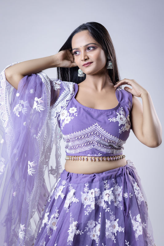 Purple designer lehenga choli custom made with embroidered georgette
