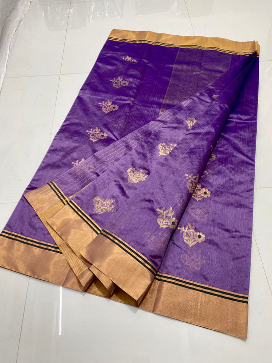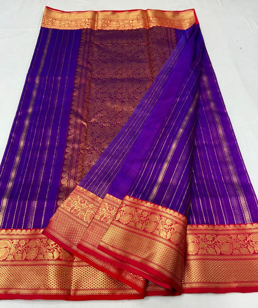 Purple katan silk saree with wide border