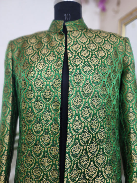 Green with Gold Long Cape Jacket For Women