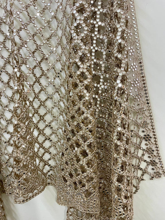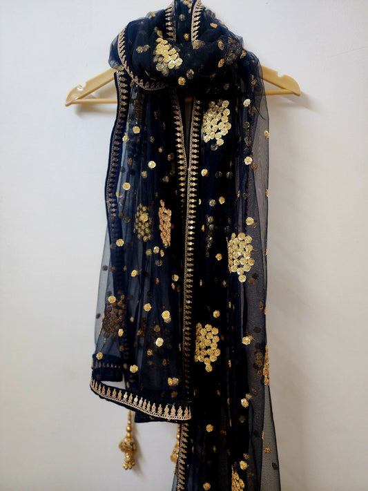 Posheeda Designer Net Dupatta – Golden Mirror & Sequin Work