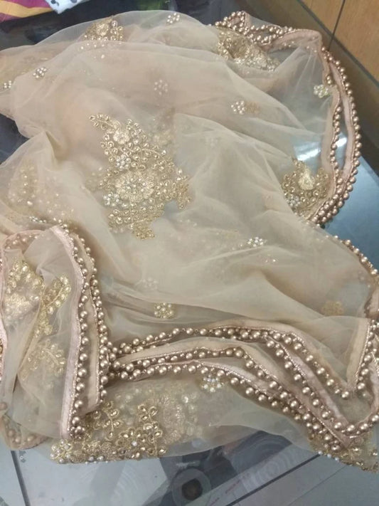 Beaded sheer beige dupatta for women