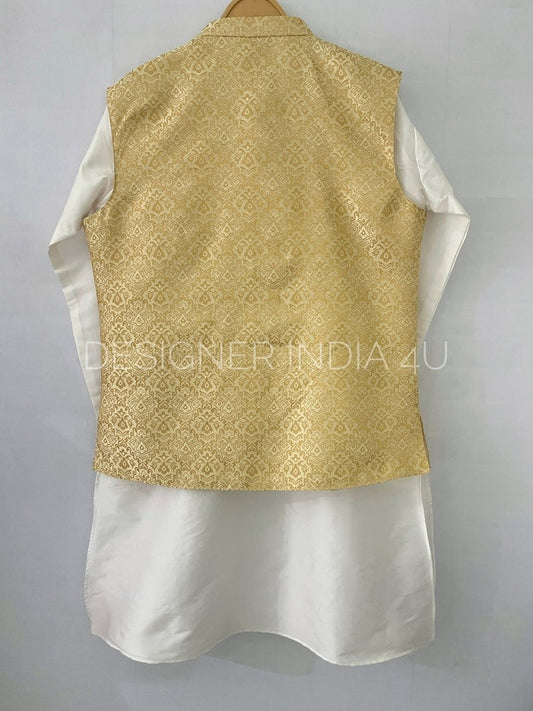 Mens Kurta Pajama with Half Jacket in Banarsi Jaquard