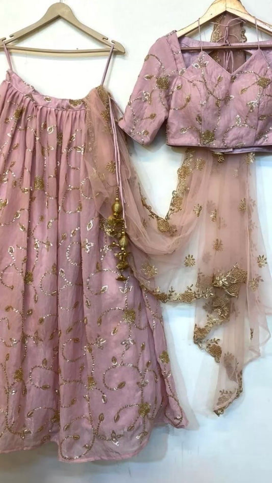 Pastel Pink Embroidered Organza Lehenga Set with Net Dupatta - Plus size Available