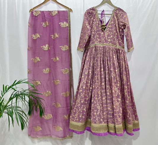 Purple tissue silk anarkali salwar kameez suit for women