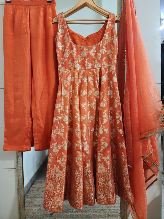 Orange Embroidered Anarkali Salwar Kameez with Organza Dupatta