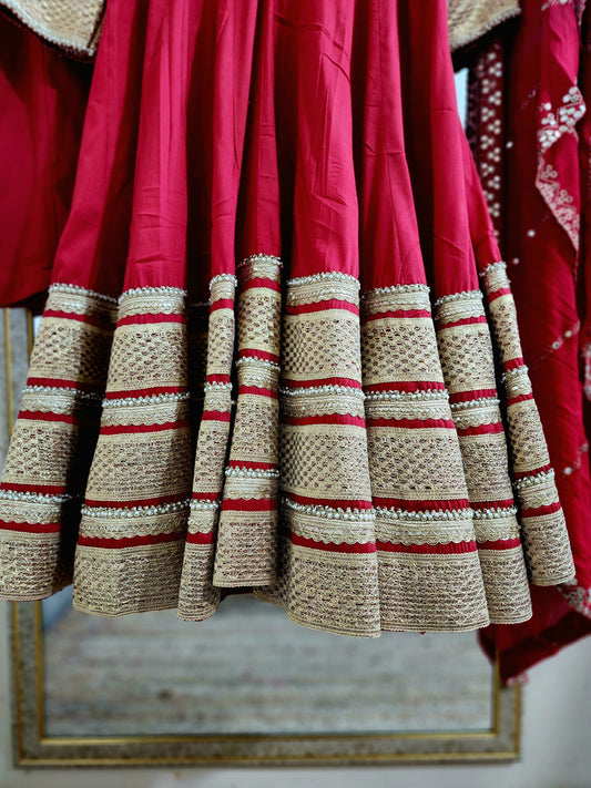 Pakistani Style Anarkali Salwar Kameez Suit Red Silk Cotton Fabric