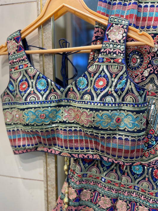Royal Blue & Silver Sequin Salwar Kameez Set