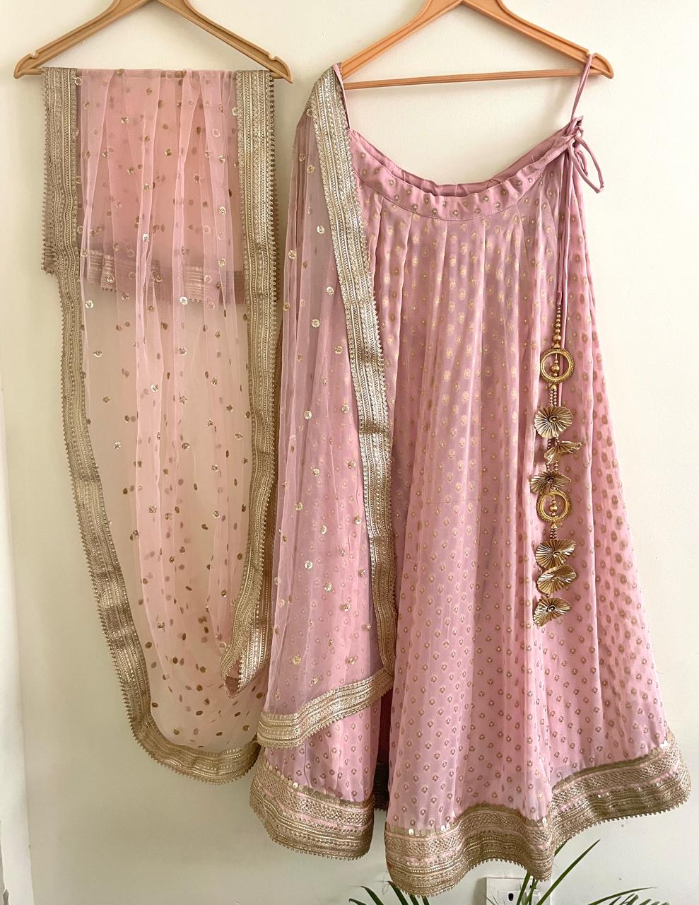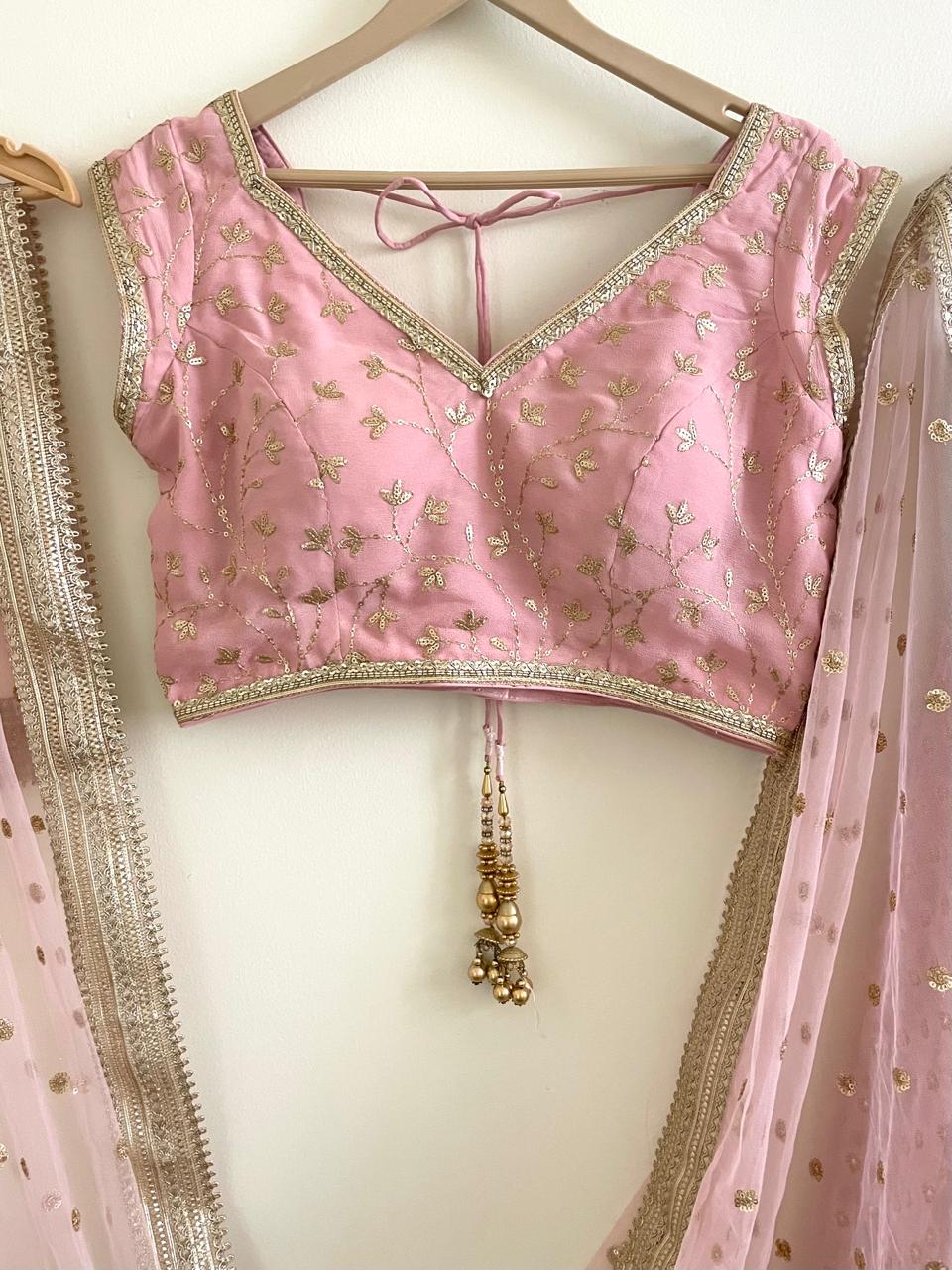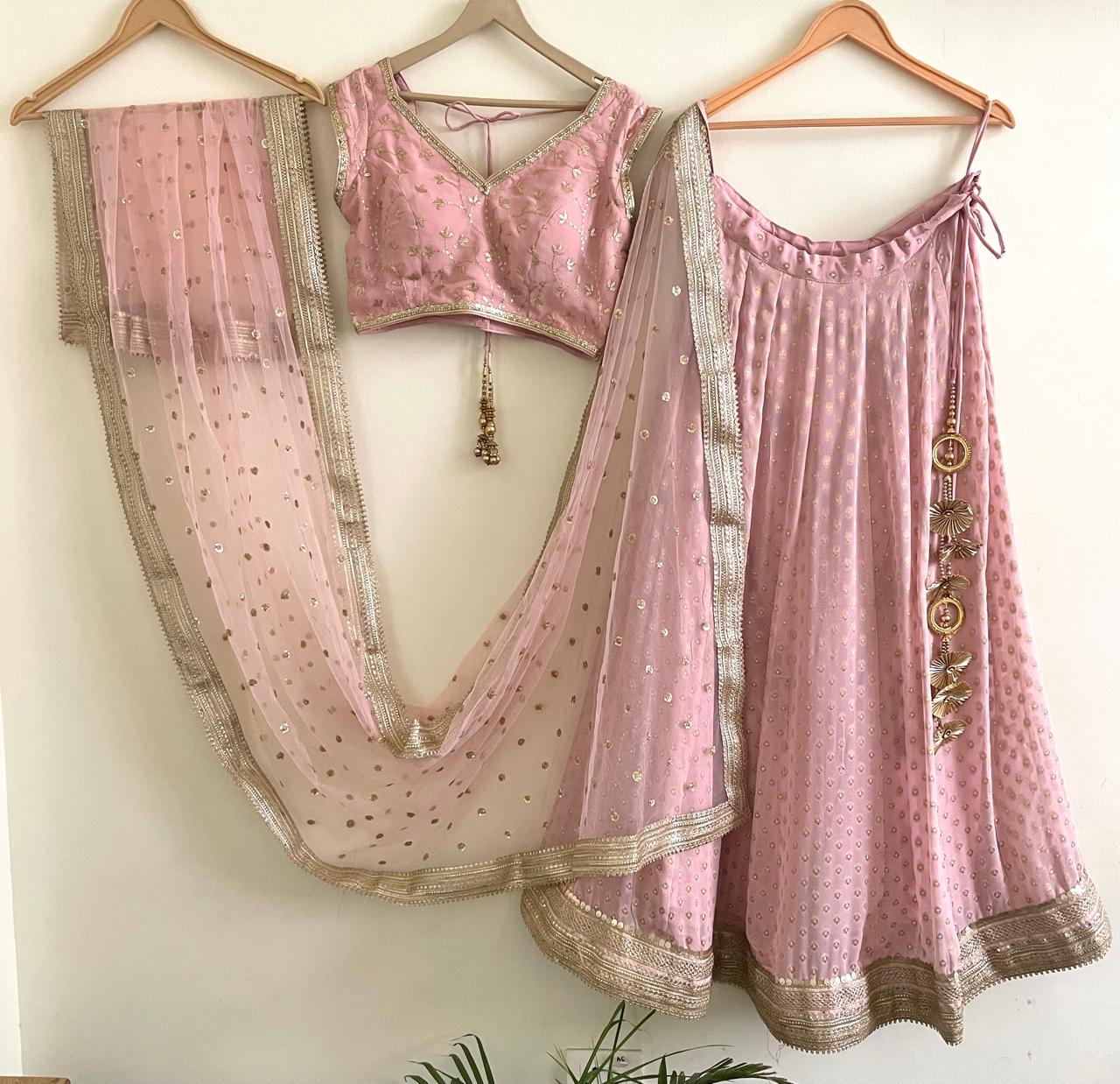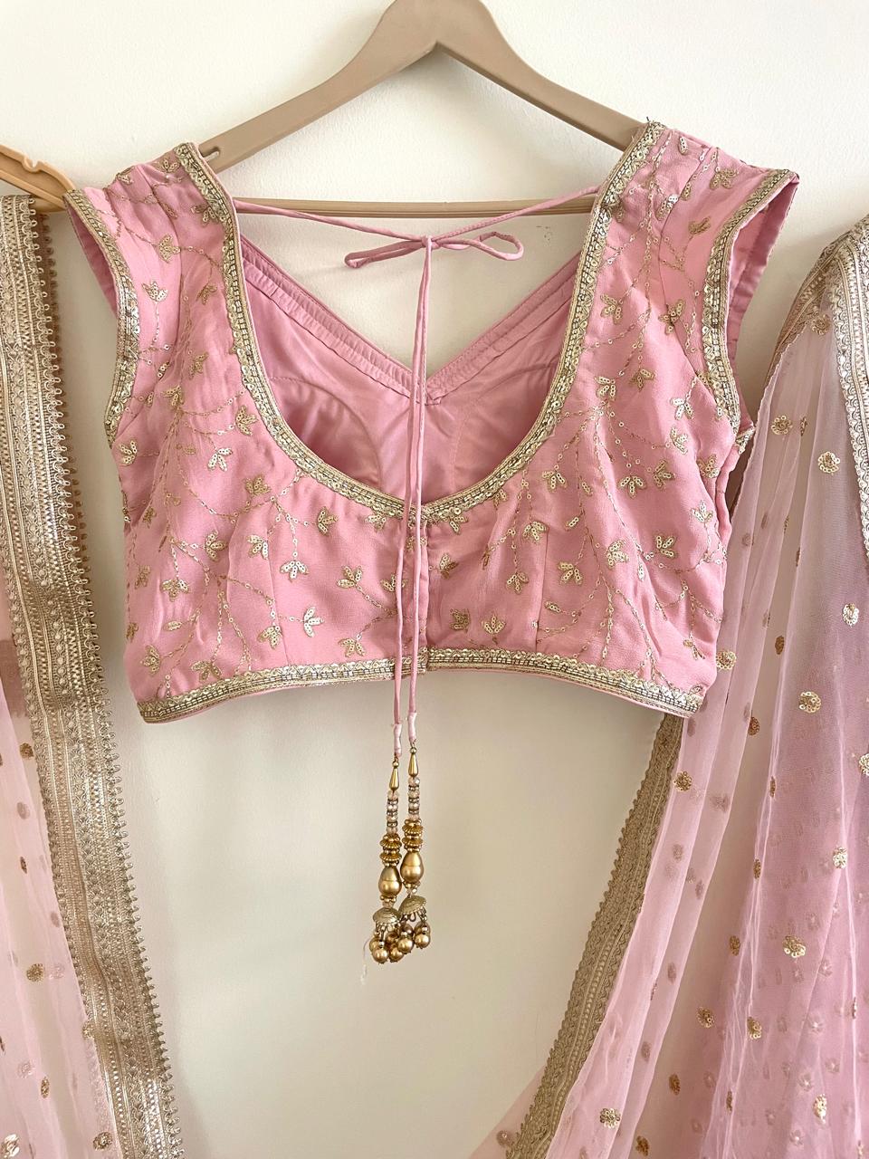 Style: Soft, elegant, and dazzling three-piece set (Lehenga, Blouse, Dupatta). Perfect for graceful celebrations like Engagements, Sangeet, and daytime weddings.