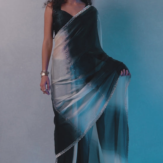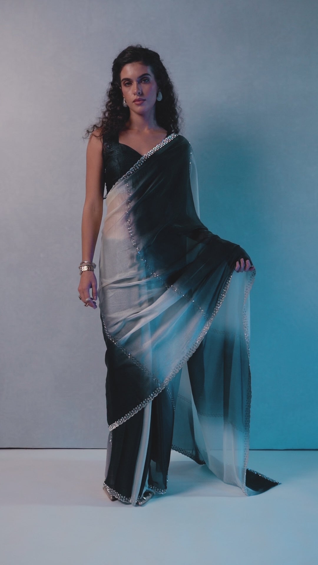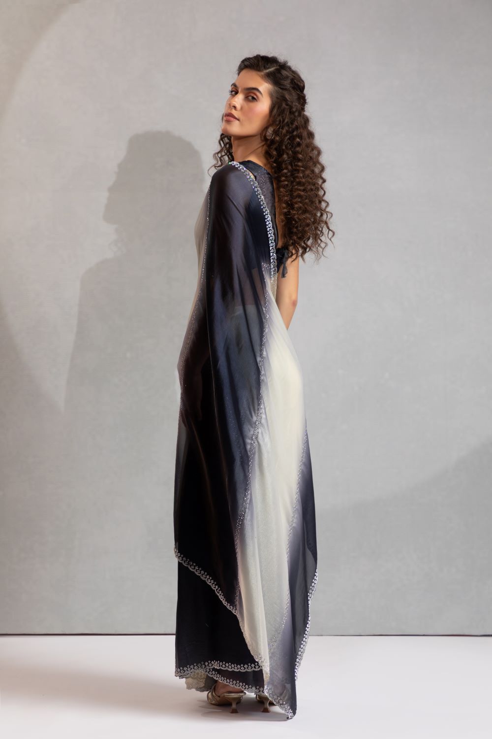 Black & Ivory Ombre Organza Saree with Sequin Border