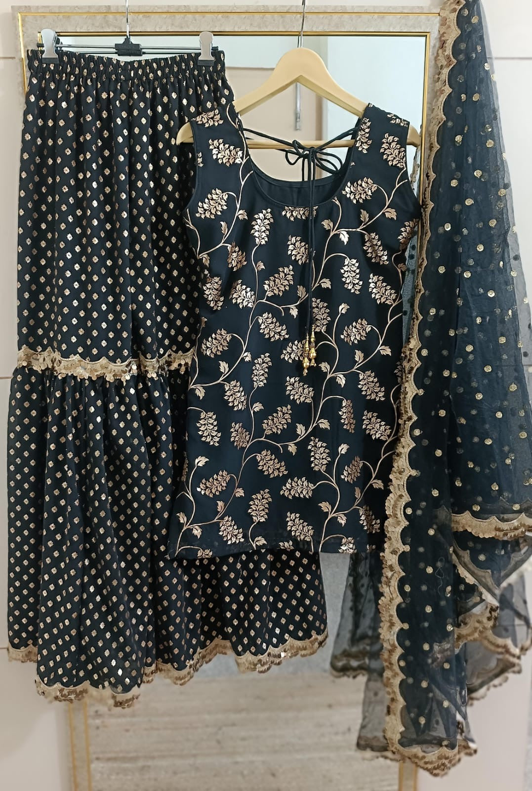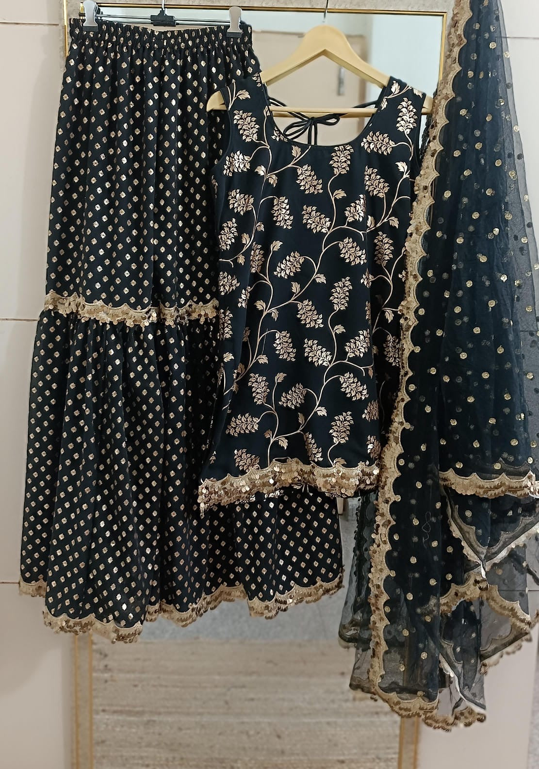 Sharara (Bottom) - Foil Print Georgette fabric.