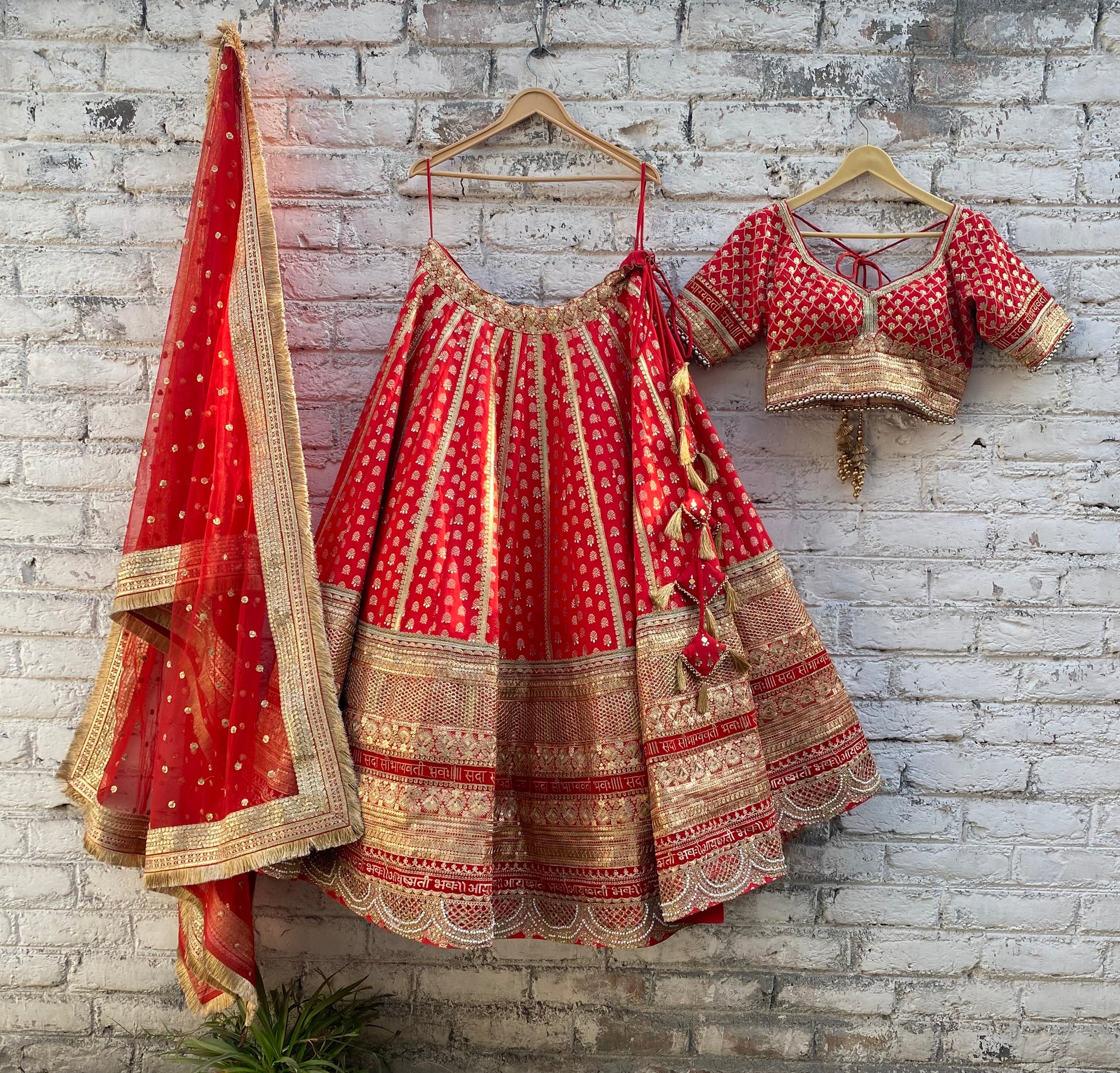 Bridal lehenga for wedding red colour heavy embroidery silk fabric