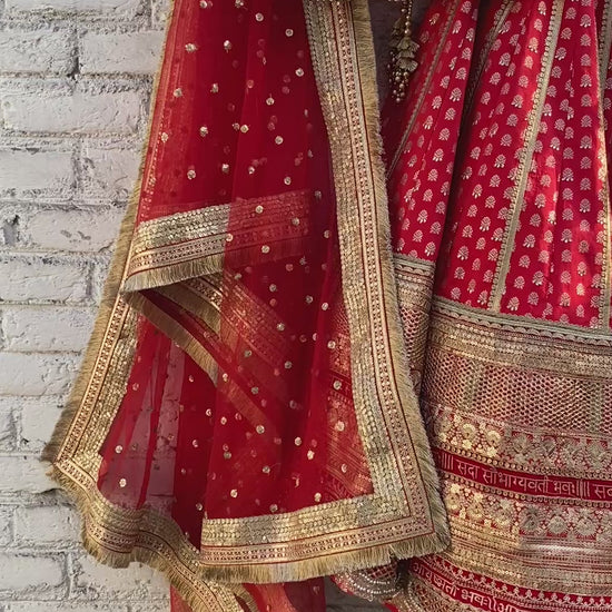 Step into your special day with confidence and elegance in our Bridal Lehenga. Made with luxurious silk fabric, the heavy embroidery in rich red adds a touch of royalty. Perfect for any wedding, this lehenga is sure to make you feel like the true queen you are.