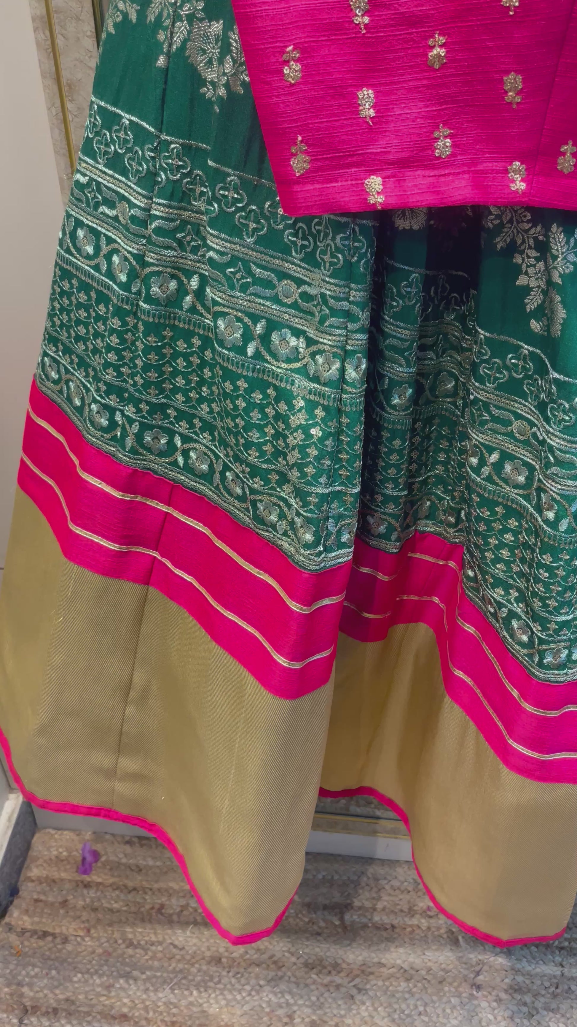 Elegant Green Lehenga with Pink Embroidered Blouse & Dupatta – Indian Ethnic Wear