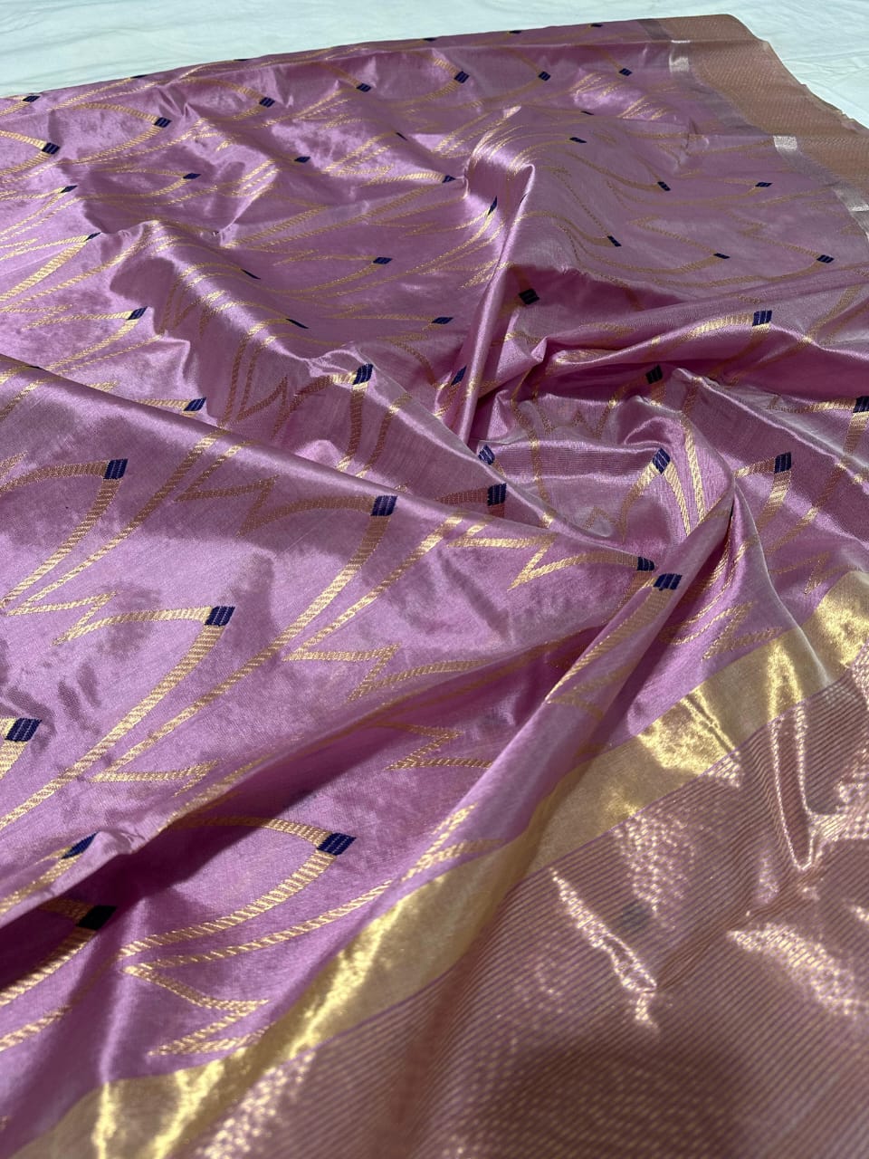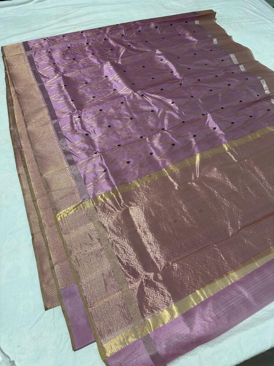 Color: Lavender with gold zari and navy accents