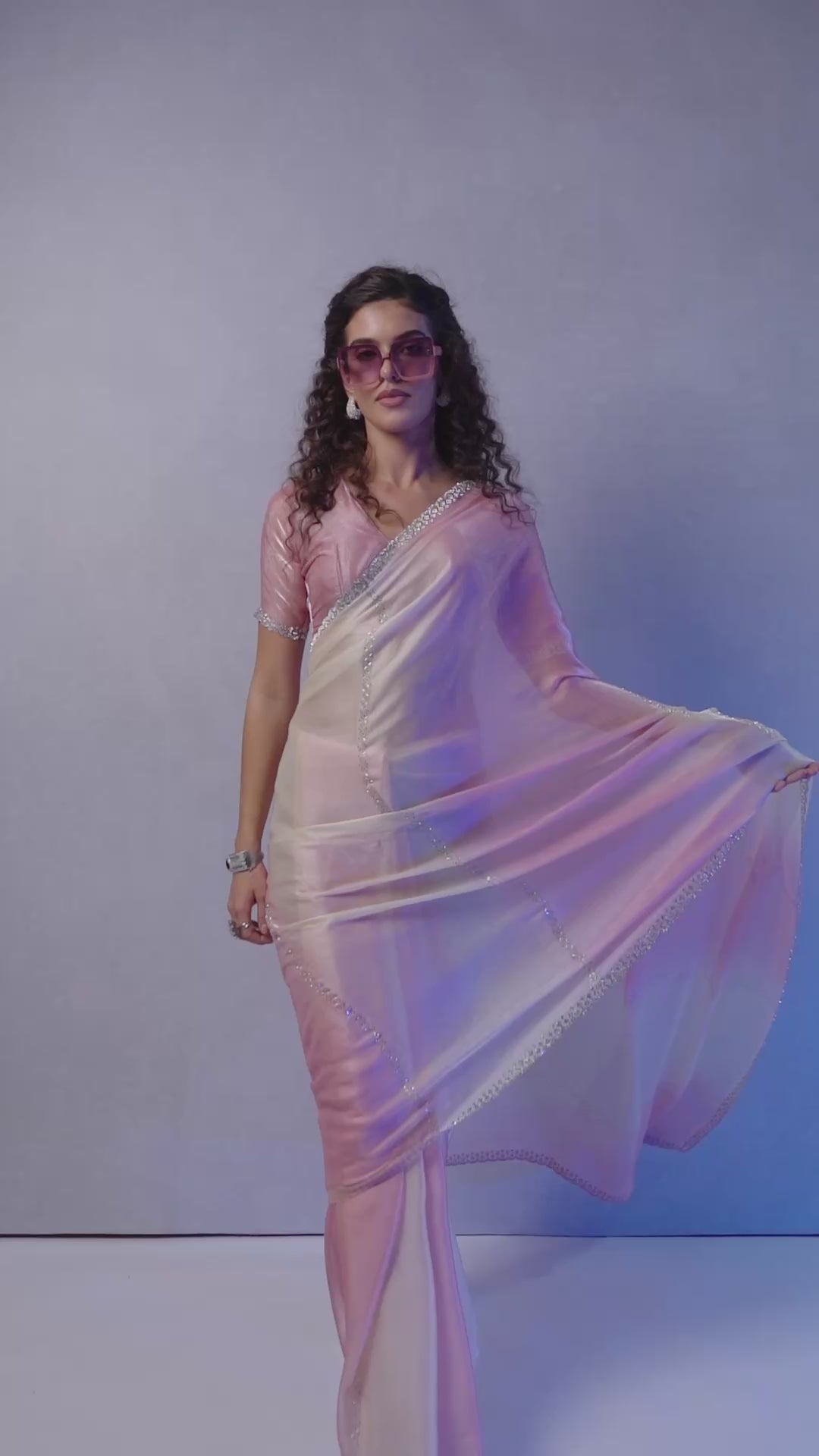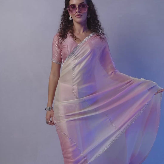 Elegant Ombre Pink & Cream Organza Saree with Sequin Border