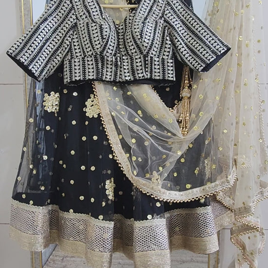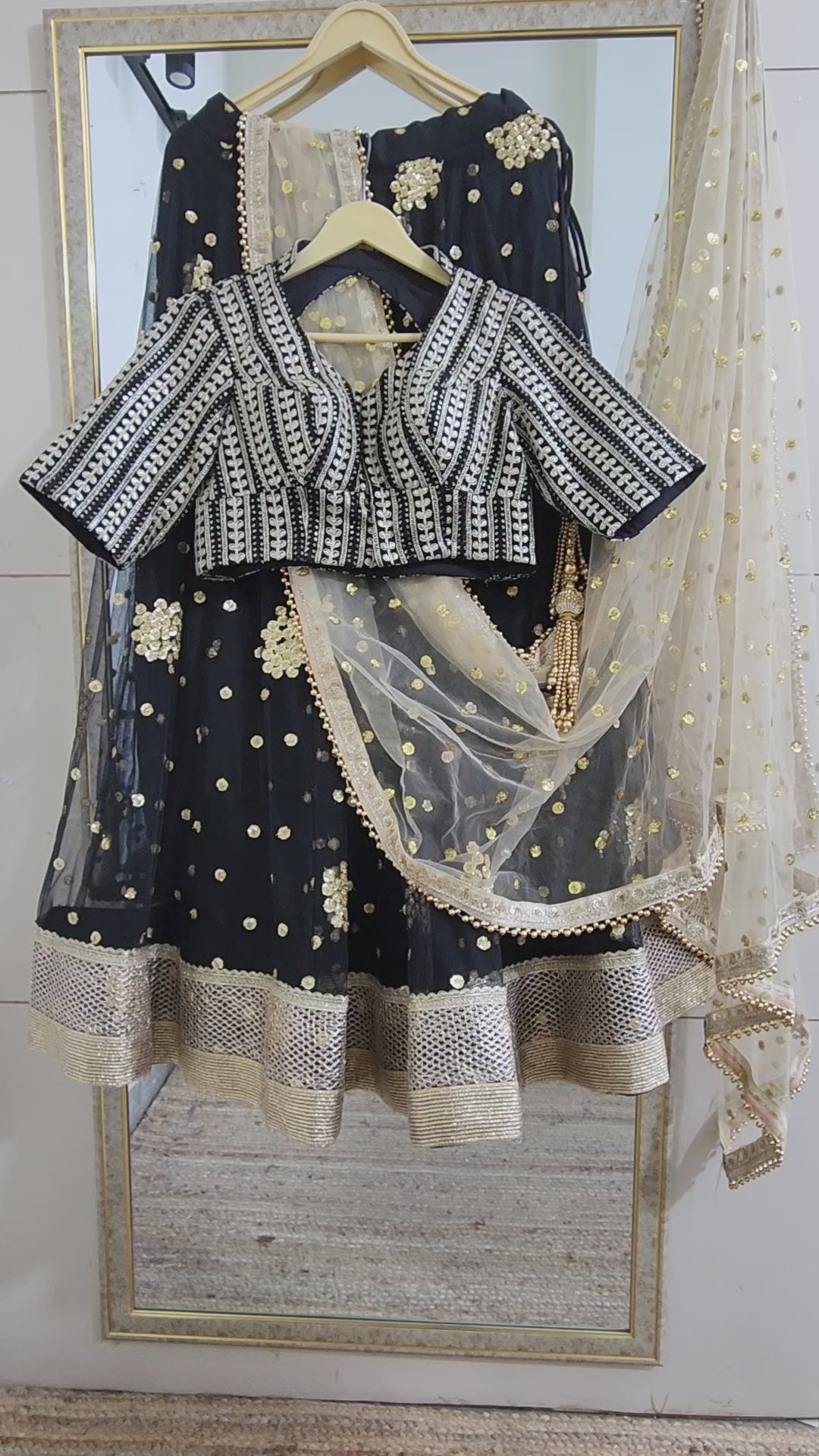 With exquisite embroidery and a stunning golden dupatta, our black lehenga is the epitome of elegance. The heavy work blouse adds a touch of opulence to this traditional ensemble. Perfect for any special occasion, this lehenga will surely make you the center of attention.