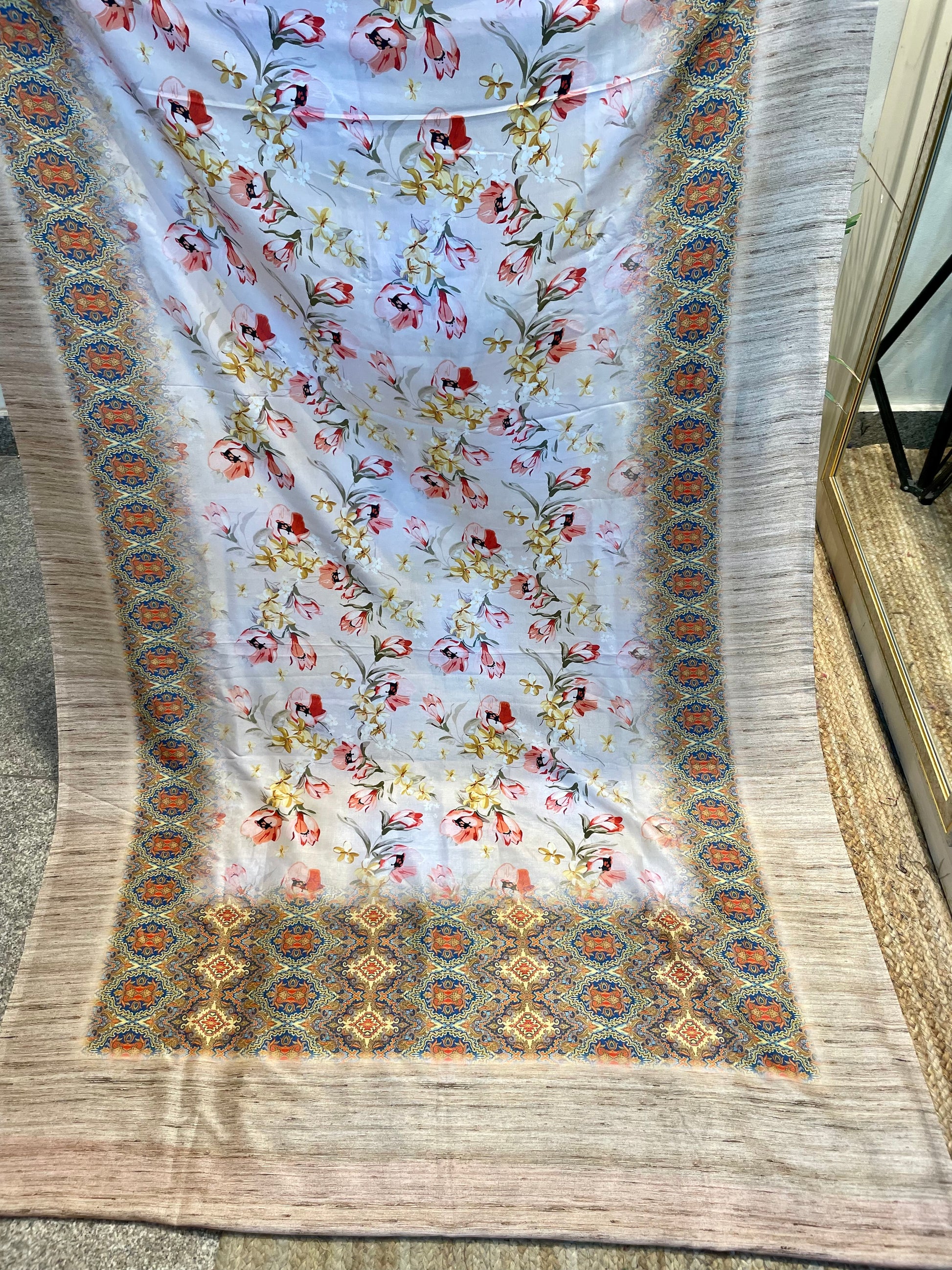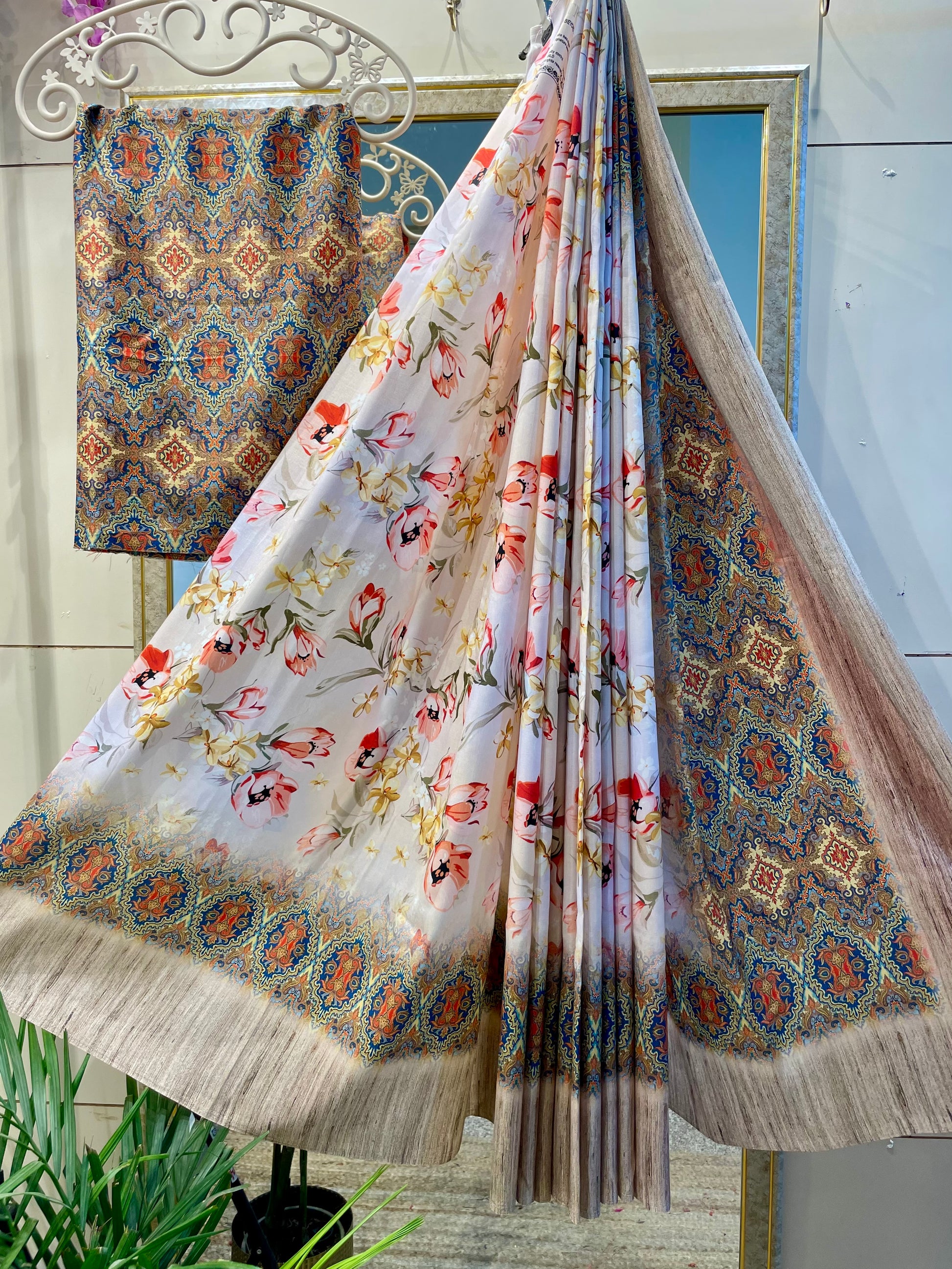 Floral print tussar silk saree blouse for women