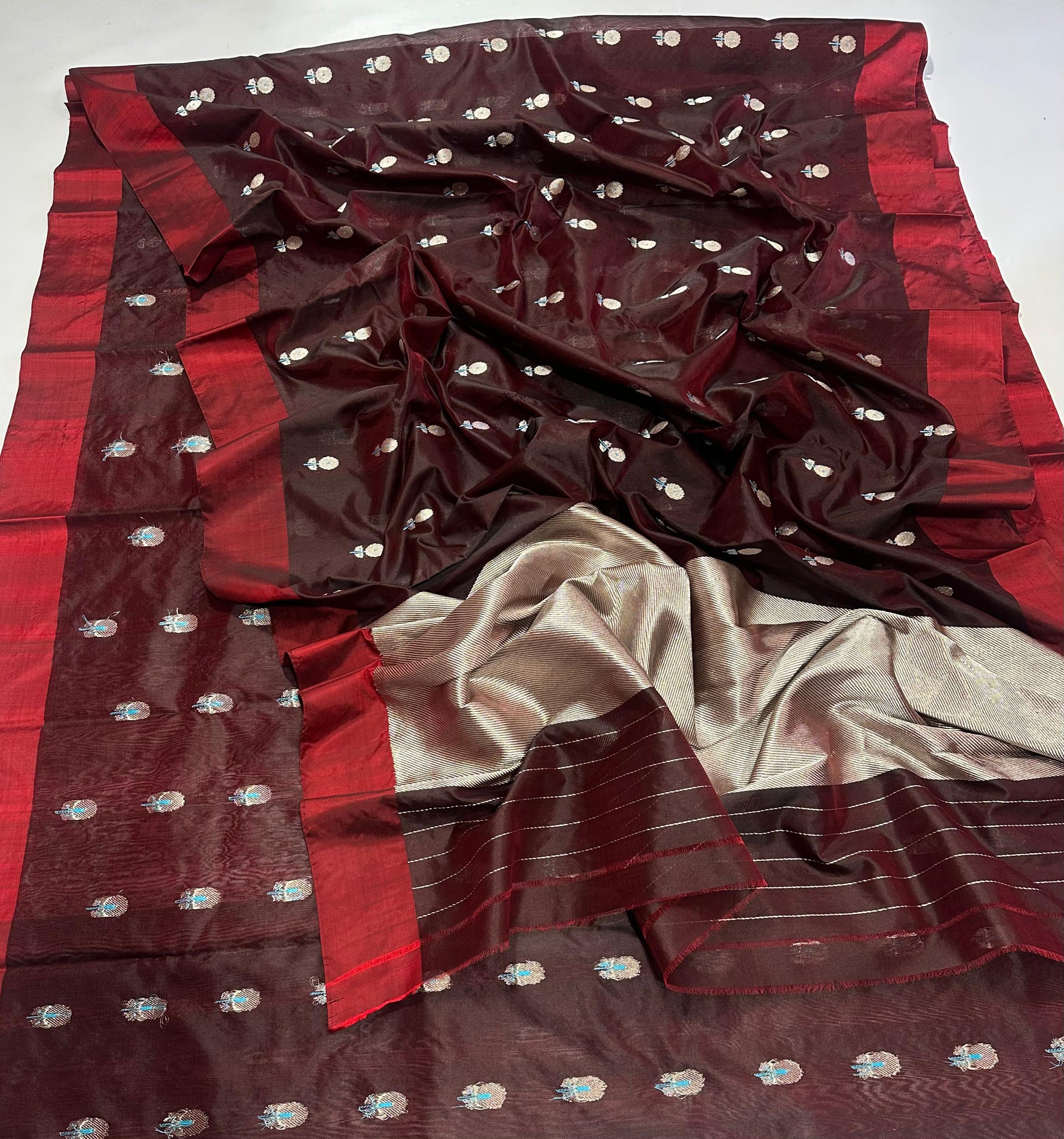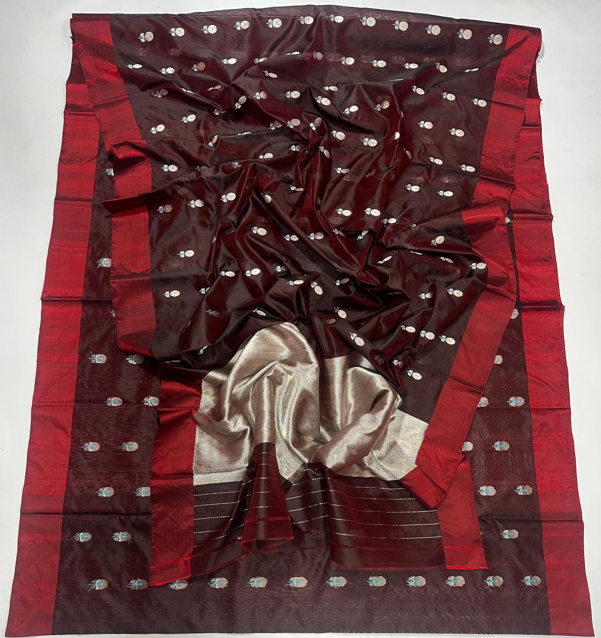 Handwoven Maroon & Silver Pattu Silk Saree with Zari Border