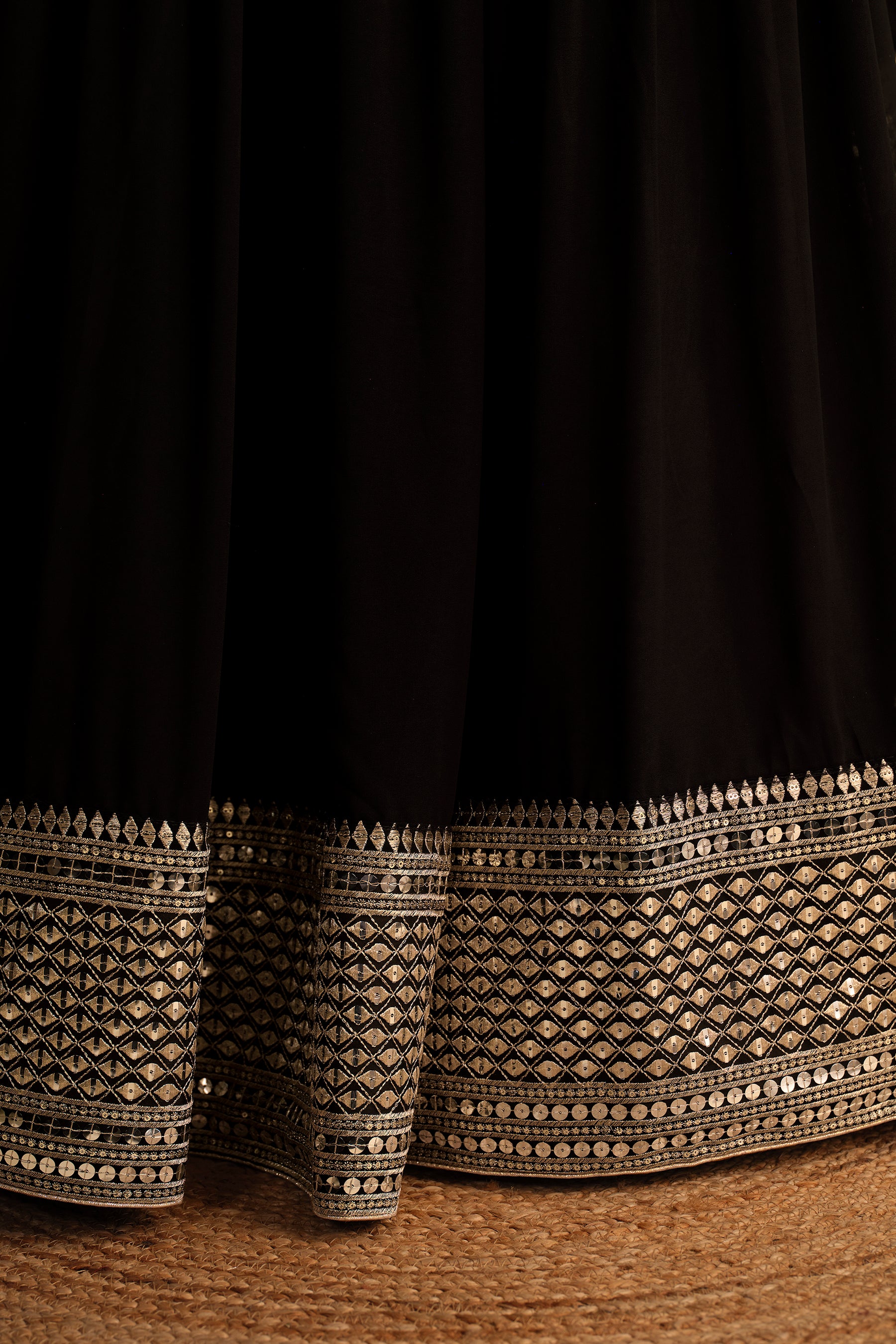 Colour: Deep, Luxurious Black (with multi-colored thread work).