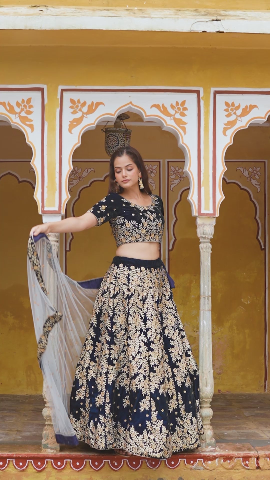 Fabric: Luxurious Velvet (Lehenga/Blouse); Soft Net (Dupatta).