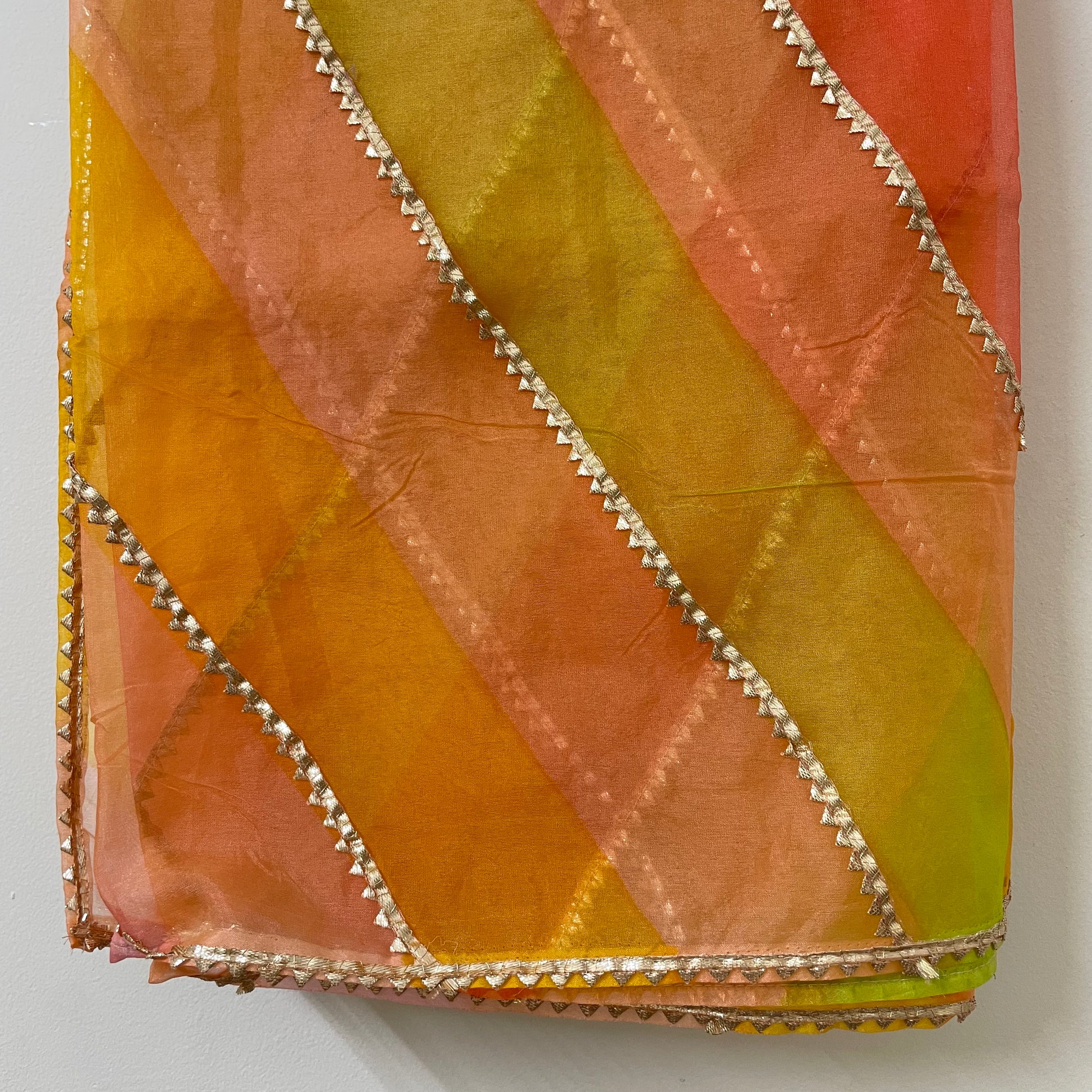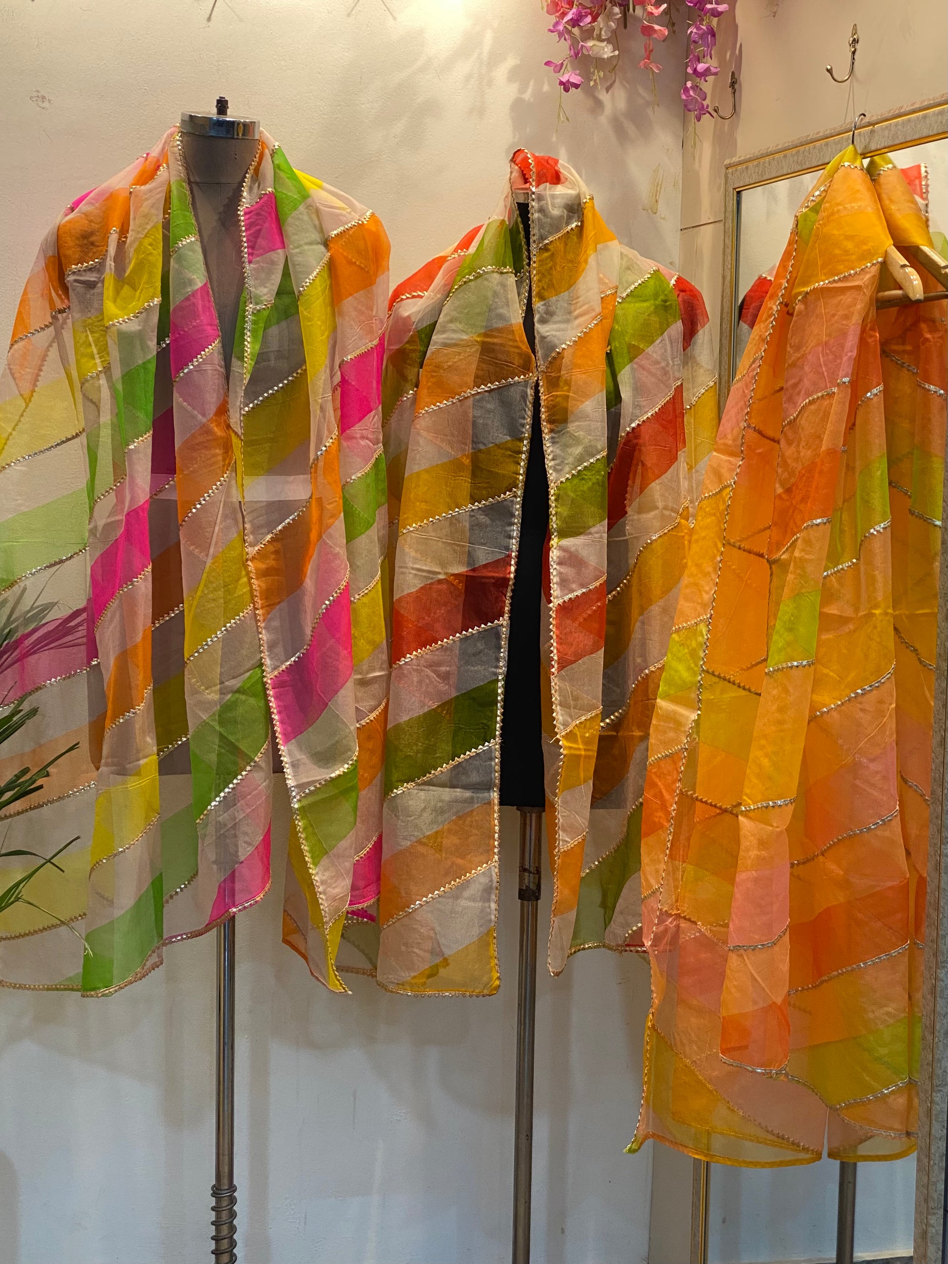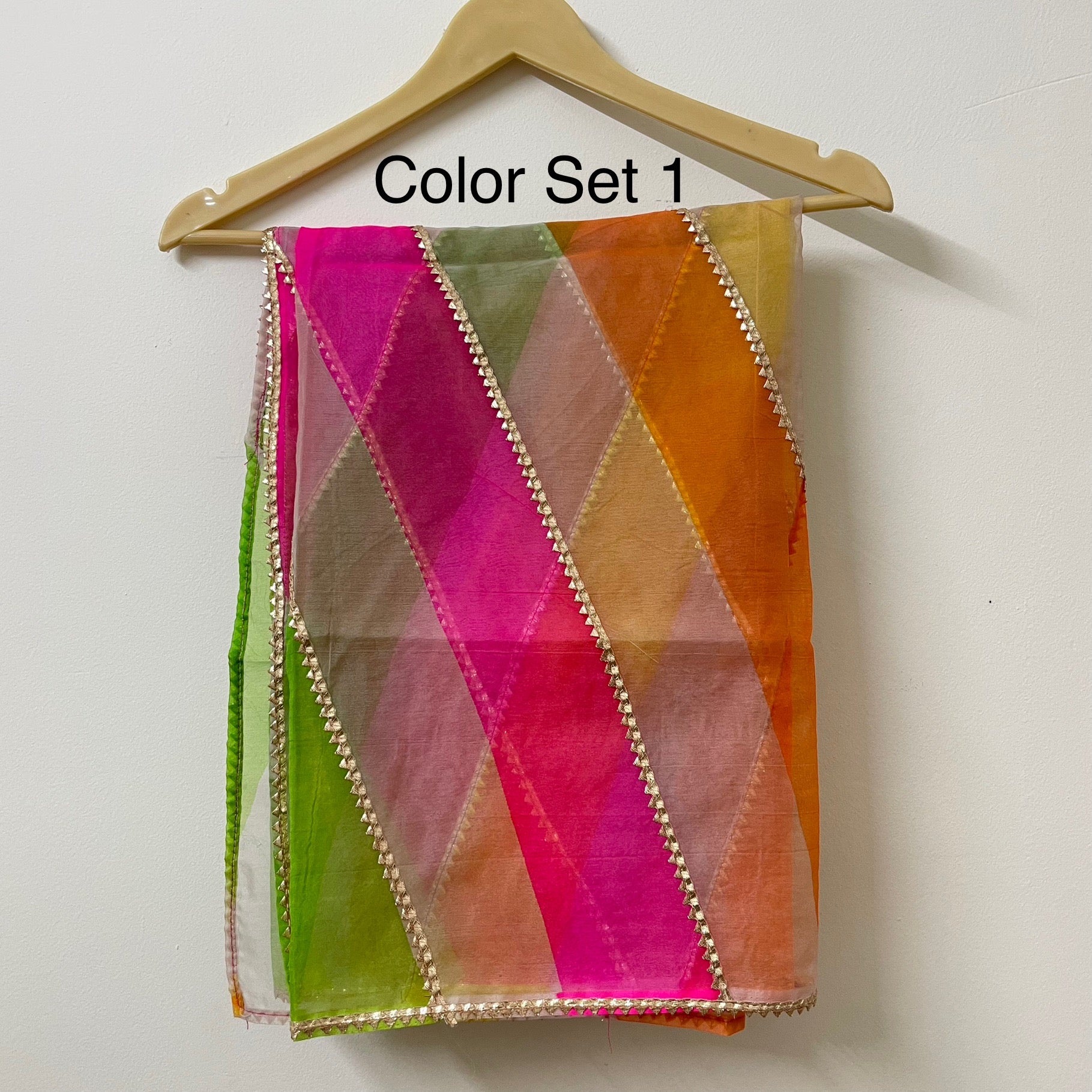 Expertly crafted for weddings and special occasions, this multicolour Organza dupatta for women will add a touch of elegance to any outfit. The lightweight fabric drapes beautifully for a feminine look, while the vibrant colours will complement any ensemble. Elevate your style with this versatile and luxurious dupatta.