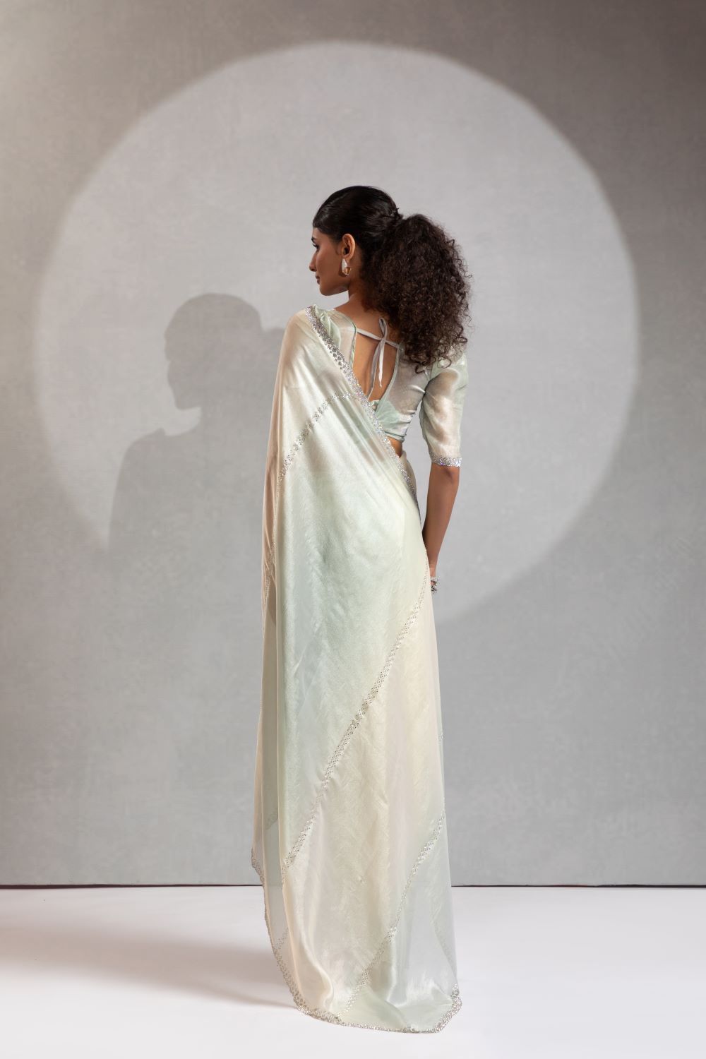 Pastel Sage Green Organza Saree with Subtle Sequin Detailing