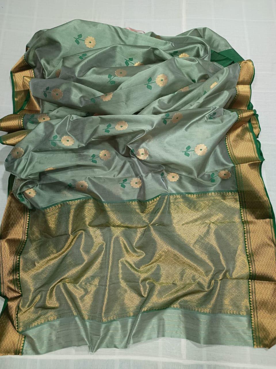 Saree - Pattu silk with all over meena work nakshi border .