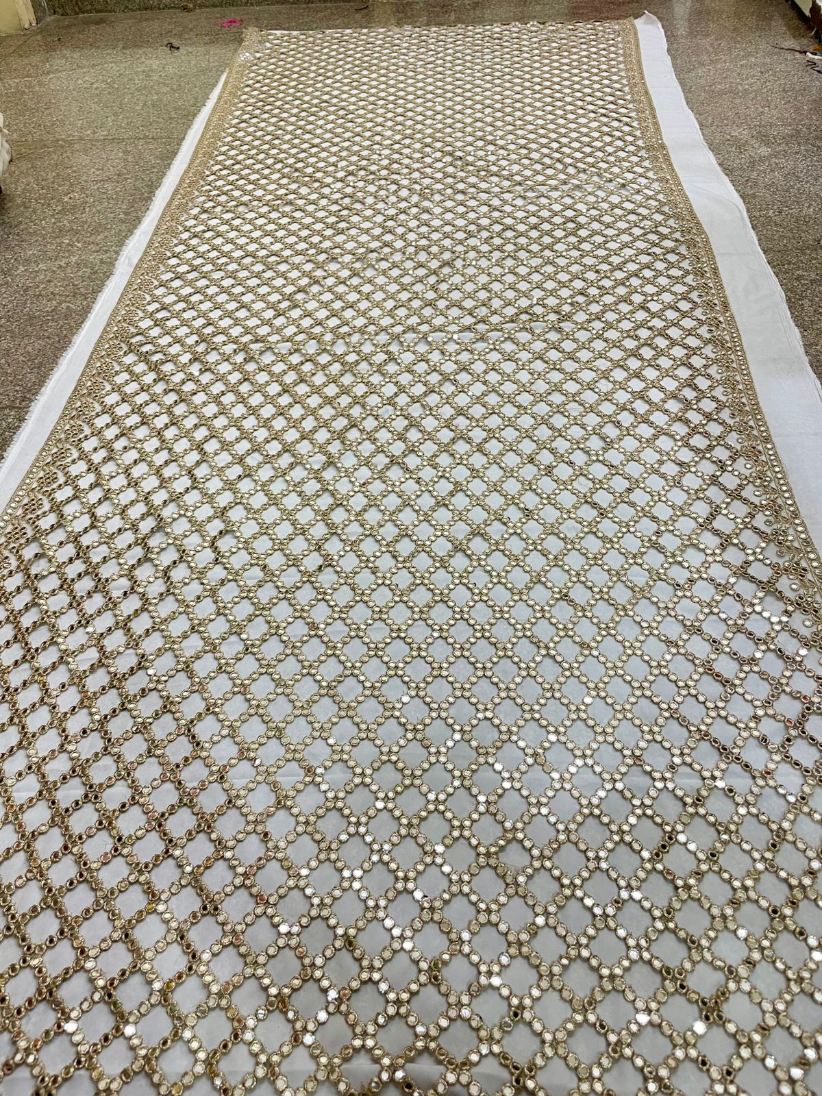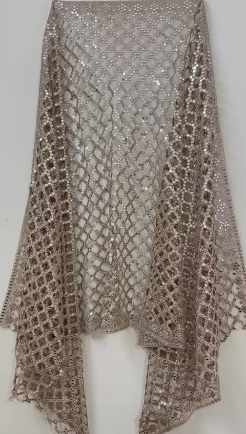 Posheeda Designer Net Dupatta – Golden Mirror & Sequin Work
