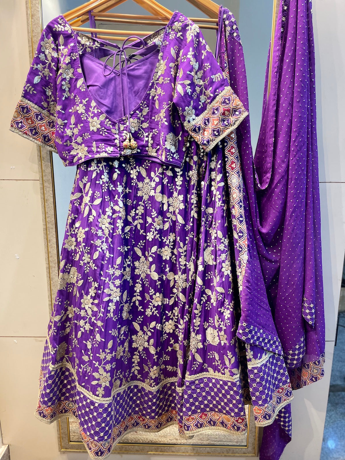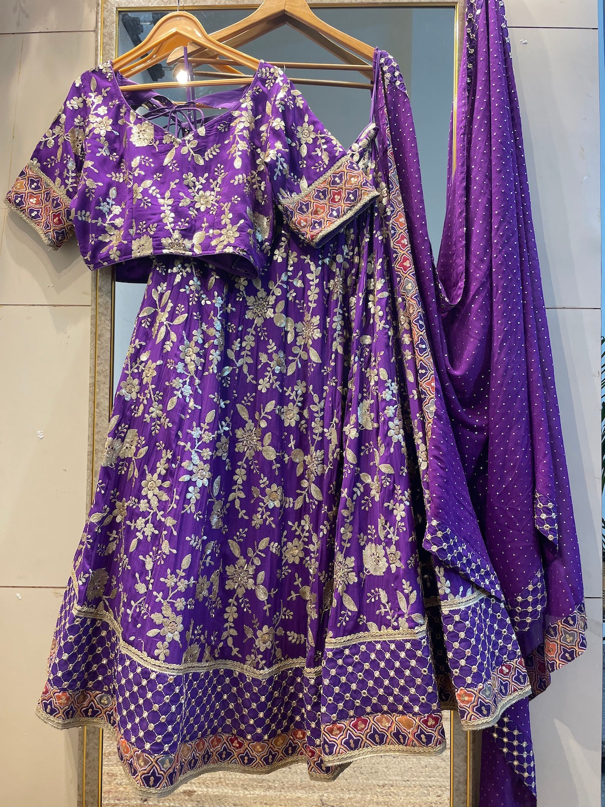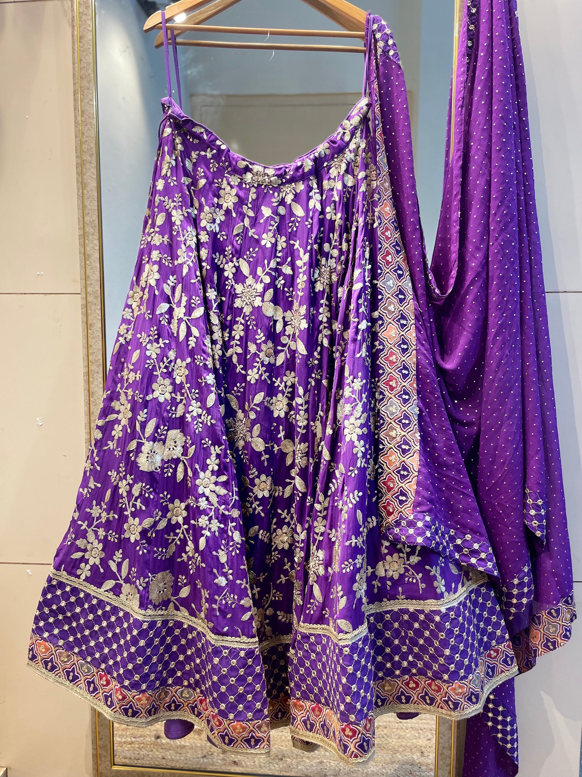 Purple designer lehenga choli custom made with embroidered georgette