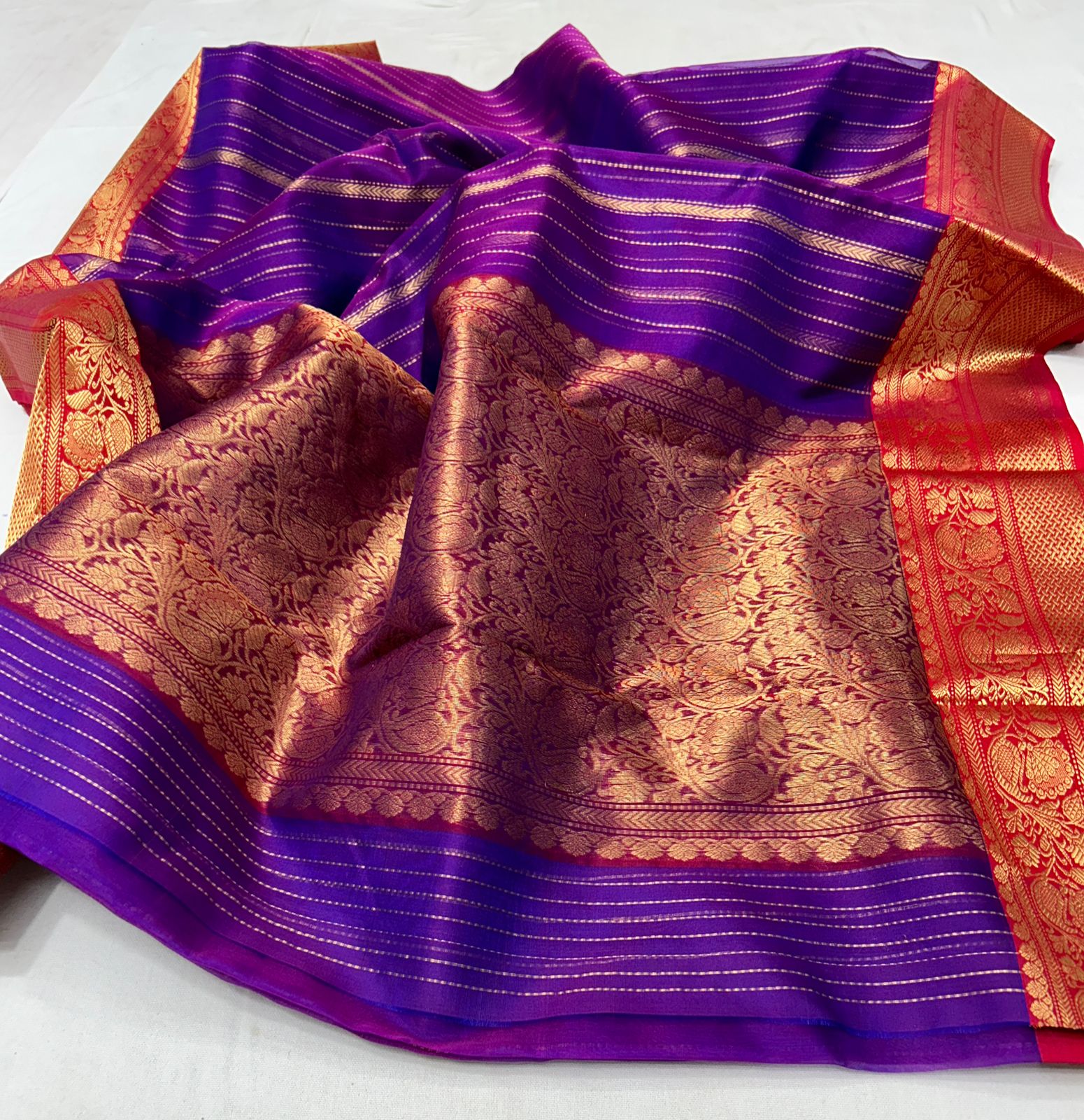 Elevate your traditional wardrobe with our stunning Purple Katan Silk Saree. Crafted with premium silk, this saree features a wide border that adds a touch of elegance to your outfit. Experience the comfort and luxury of silk while making a statement at any event.