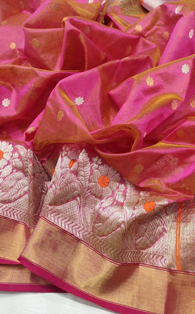 Radiant Pink & Gold Pattu Silk Saree with Intricate Embroidery
