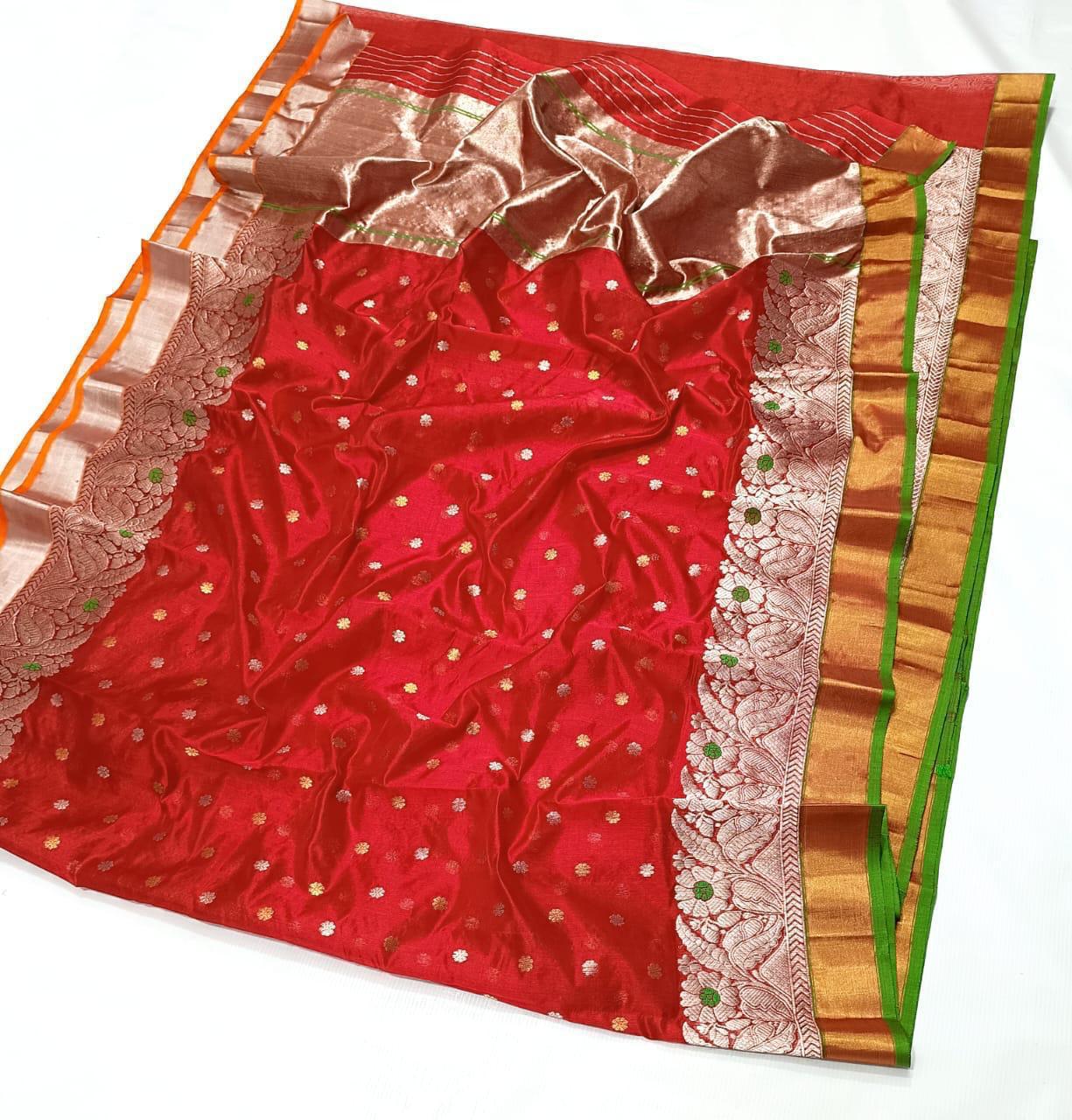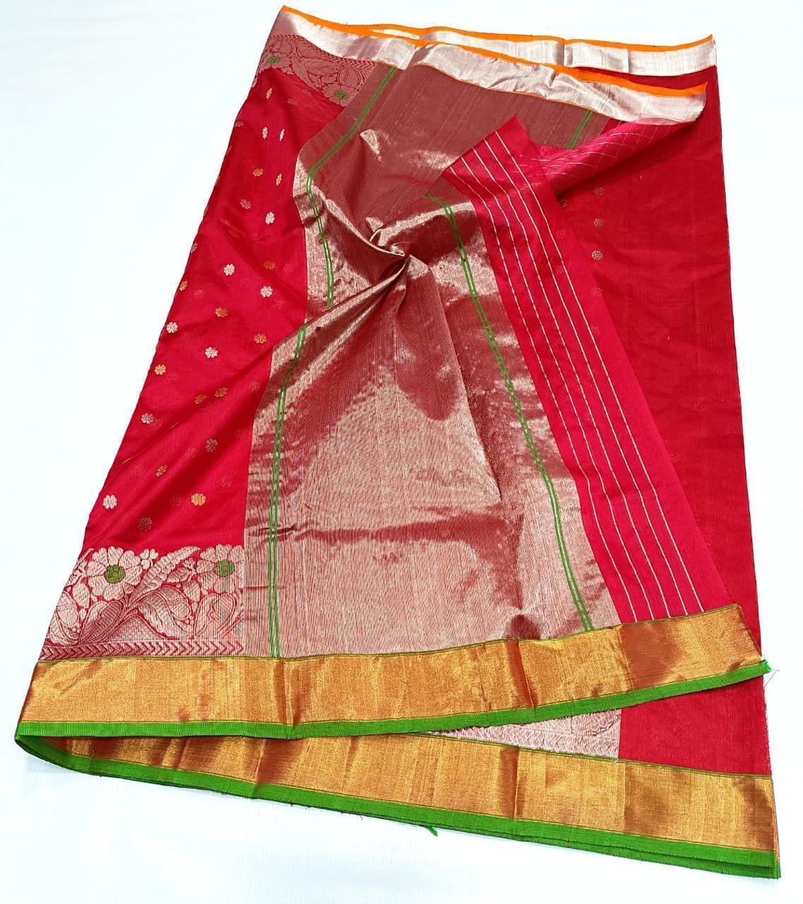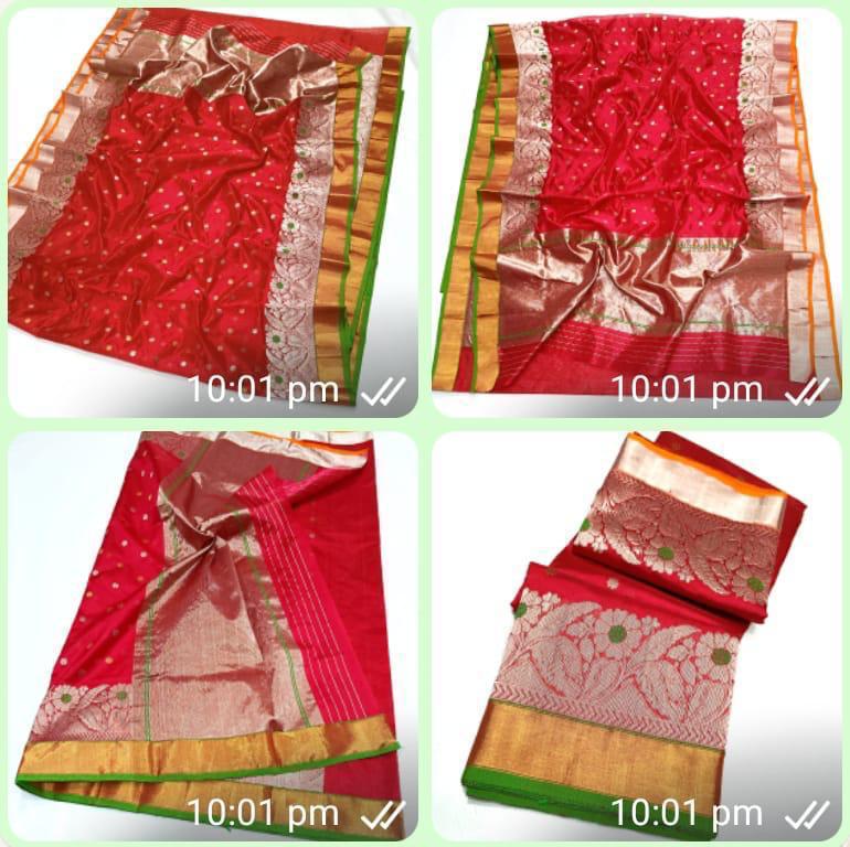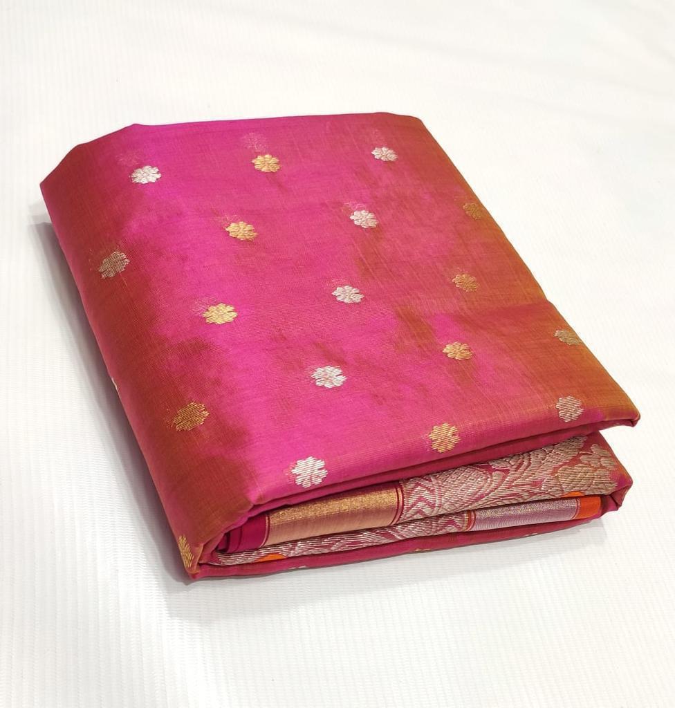 Make a royal statement in this stunning Pattu Silk Saree, featuring a luxurious blend of bright pink silk with shimmering golden motifs. A perfect choice for weddings, festivities, and traditional occasions.