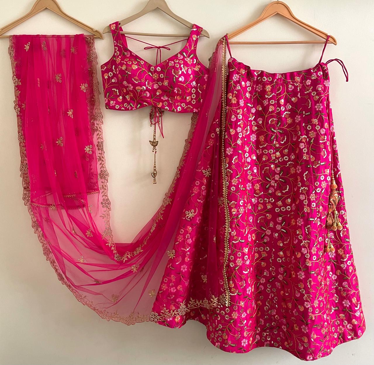 Style: Stunning and radiant three-piece set (Lehenga, Sleeveless Blouse, Dupatta). Elegant and charming, perfect for weddings, festive occasions, and Sangeet nights.