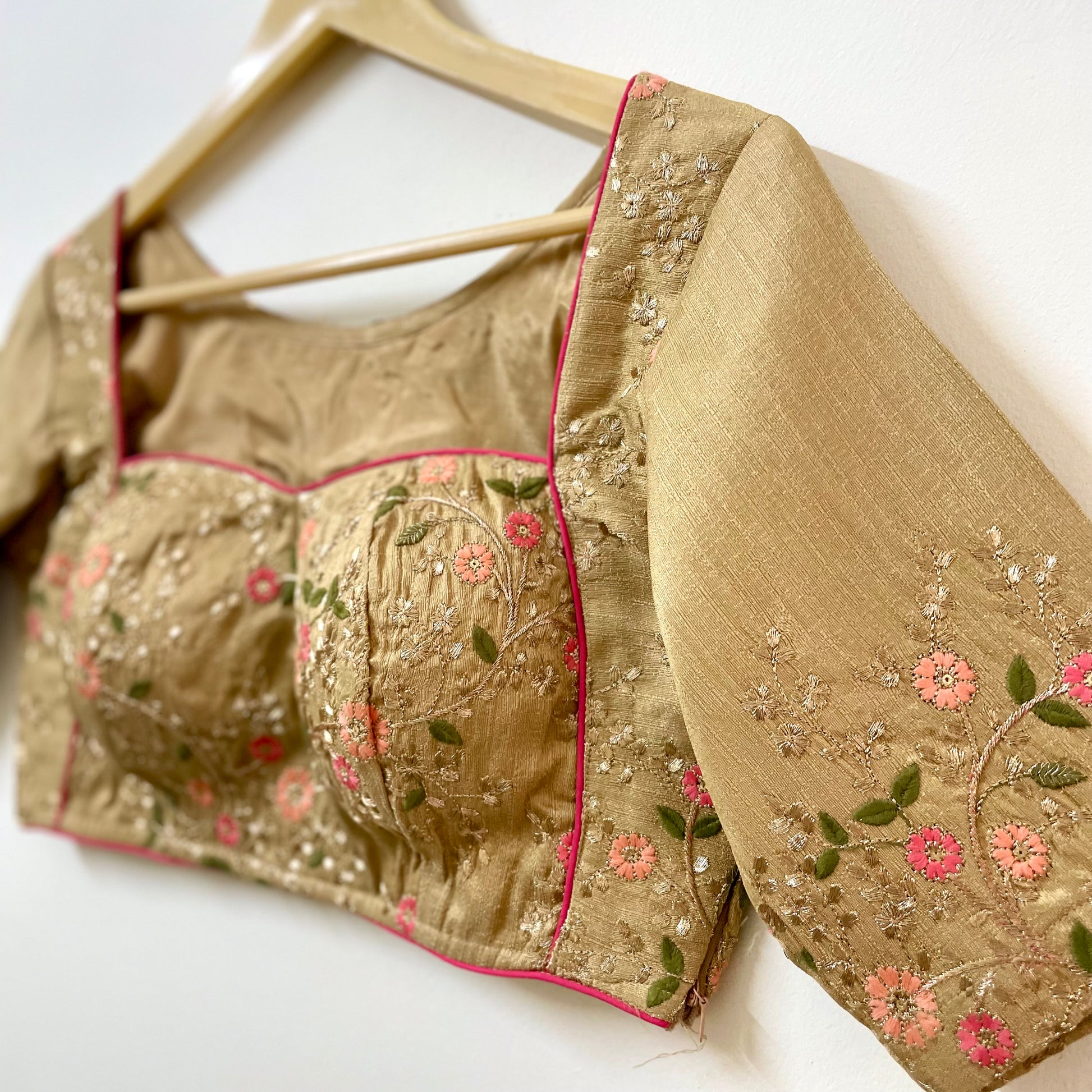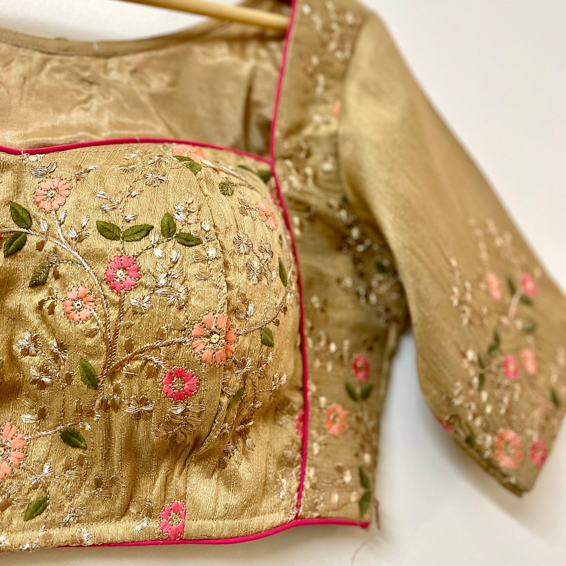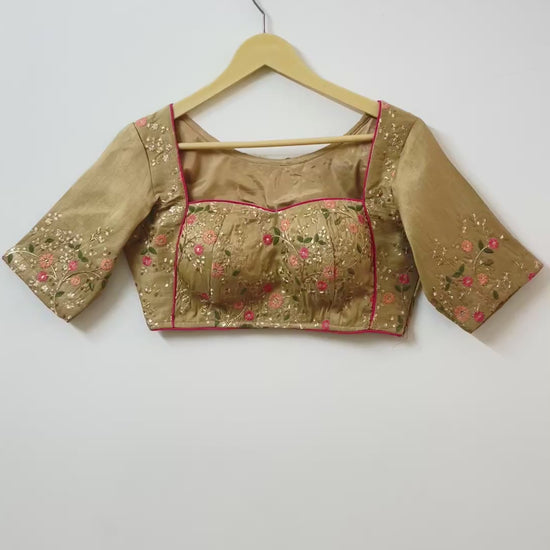 Elevate your wardrobe with our stunning golden blouse embroidered designer top for ladies. This expertly crafted top features intricate embroidery, adding a touch of elegance to any outfit. Made with high-quality materials, it offers both style and comfort. Upgrade your look and make a statement with this must-have piece.